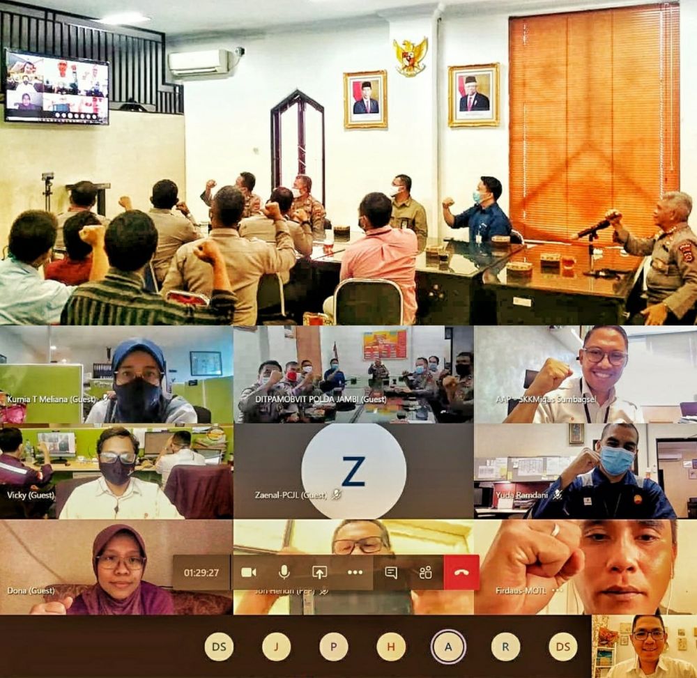 Rapat koordinasi yang dilakukan secara daring ini dihadiri oleh Dirpamobvit Polda Jambi, Kombespol Irwan Rahmaeni, Wadirpamobvit Polda Jambi, AKBP Frido Situmorang,
