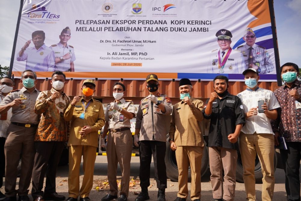 Siang tadi, Pemprov Jambi dan Kementerian Pertanian RI melalui Badan Karantina Pertanian mengadakan Acara Pelepasan Ekspor Perdana Kopi Kerinci di Pelabuhan Talang Duku.