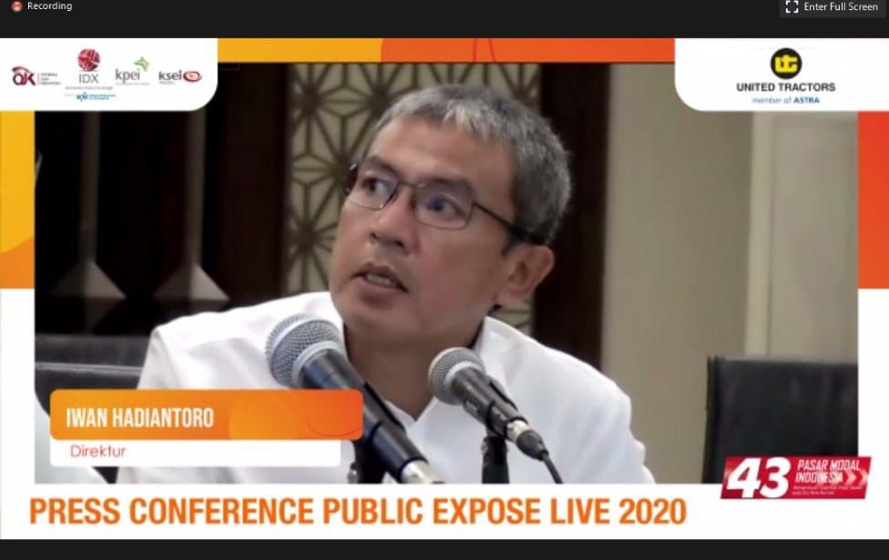 ONLINEJAMBI.COM - PT United Tractors Tbk (Perseroan; UT) menyampaikan Paparan Publik secara live melaluiaplikasi webinar Zoom dalam rangkaian acara Public Expose Live 2020 yang diselenggarakan oleh Bursa Efek Indonesia (BEI), Selasa, 25 Agustus 2020.
