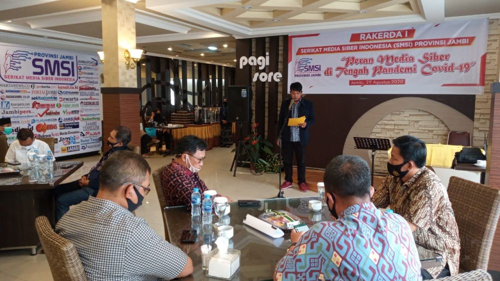 ONLINEJAMBI.COM - Pada Rapat Kerja Daerah (Rakerda) I Serikat Media Siber Indonesia (SMSI) Provinsi Jambi, Mukhtadi Putranusa selaku ketua menyampaikan telah bergabung sebanyak 64 perusahaan media siber yang tersebar diseluruh kabupaten/kota se-Provinsi Jambi.