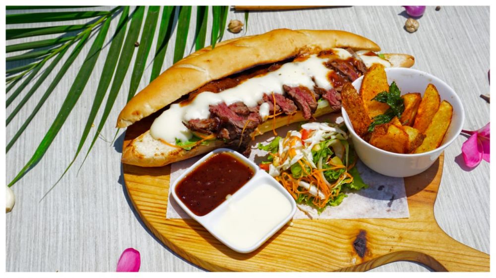"Tilong Burger adalah kreasi french bread yang diisi dengan daging tenderloin Australia bakar dan tumis bayam. Menu ini disajikan dengan kentang mentega, dan saus krim keju," jelas Yose Rizal, Executive Chef Swiss-Belhotel Jambi.