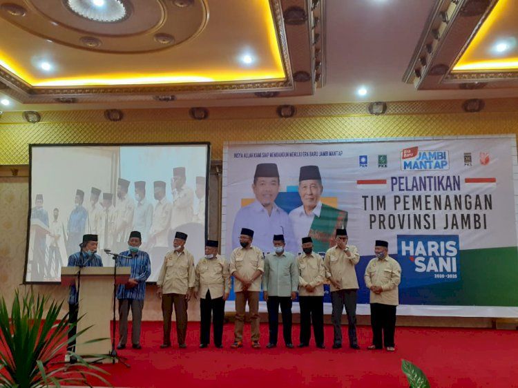 ONLINEJAMBI.COM - Pasangan calon gubernur Jambi dan wakil gubernur Jambi, Al Haris-Abdullah Sani (Haris-Sani) melantik tim pemenangan Provinsi Jambi, Minggu (13/9) di Bumi Pasundan, Kota Jambi.