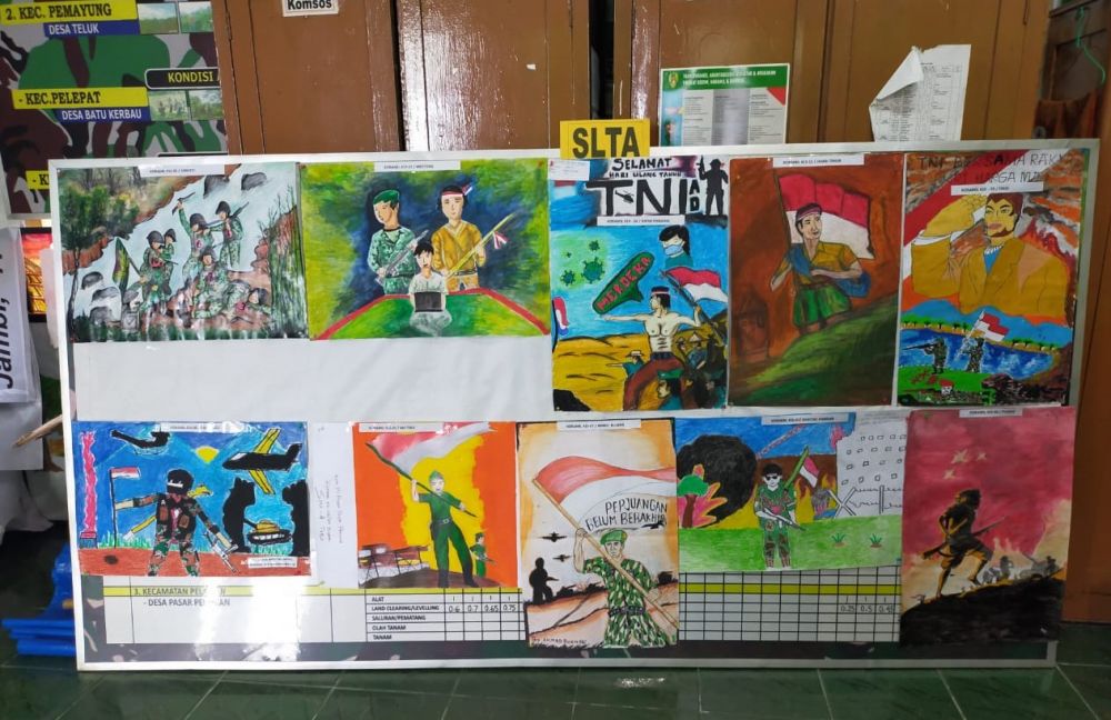 Lomba lukis yang diikuti 78 peserta (39 siswa SMP dan 39 SMA) dan lomba baca puisi diikuti 78 peserta (39 siswa SMP dan 39 SMA) utusan dari 39 Satuan Koramil di jajaran Korem 042/Gapu tersebut berlangsung satu hari pada Senin (14/12) secara vitual.