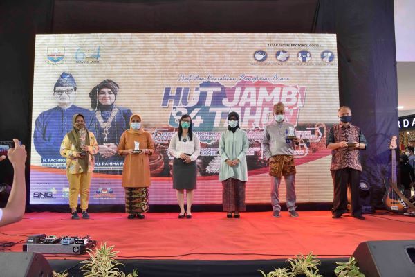 Pada Kesempatan ini, Ketua Dharma Wanita Persatuan (DWP) Provinsi Jambi yang juga Wakil Ketua Dekranasda Provinsi Jambi Iin Kurniasih Sudirman turut hadir memberikan hadiah dan tropi kepada pemenang lomba, mulai dari perlombaan Busana Batik Jambi, Lagu Daerah Jambi, Stan Pameran Terbaik dari kabupaten/kota se-Provinsi Jambi, serta kepada para pelaku usaha IKM-UKM se-Provinsi Jambi.