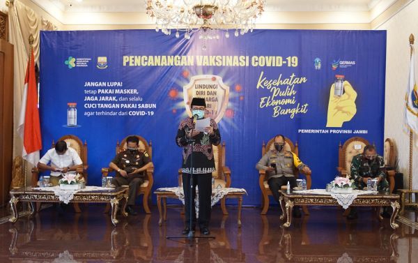 Gubernur Jambi menegaskan bahwa Provinsi Jambi sangat mendukung dan siap menyukseskan vaksinasi Covid-19, sebagai upaya untuk memerangi Covid-19, guna menghentikan pandemi, sehingga bisa melangkah lebih baik lagi dalam melaksanakan aktivitas dalam semua sektor, secara bertahap melakukan pemulihan ekonomi secara berkelanjutan, untuk membangun Provinsi Jambi, meningkatkan kemajuan dan mengupayakan kesejahteraan masyarakat Provinsi Jambi.
