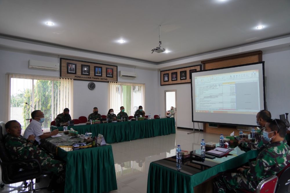 Rahmat selaku Ketua Tim PPK PUPR Provinsi Jambi memaparkan Rencana Pembangunan Makorem di hadapan Danrem 042/Gapu Brigjen TNI Zulkifli beserta staf Makorem.