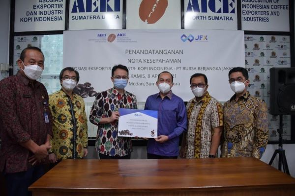 Kolaborasi JFX dan AEKI diwujudkan melalui penandatanganan nota kesepahaman (MoU) dalam rangka sosialisasi dan edukasi tentang perdagangan pasar fisik dan kontrak berjangka komoditi kopi yang disaksikan secara langsung oleh Wakil Menteri Perdagangan Jerry Sambuaga.