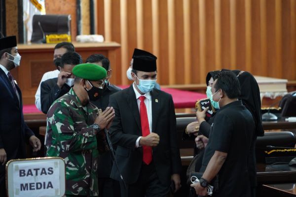 ONLINEJAMBI.COM – Danrem 042/Gapu Brigjen TNI M. Zulkifli menghadiri rapat paripurna DPRD Provinsi Jambi tentang pembahasan laporan keterangan pertanggungjawaban (LKPj) Gubernur Jambi Tahun Anggaran 2020 di ruang rapat utama DPRD Provinsi Jambi, Jumat (23/4).