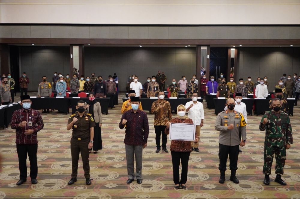 ONLINEJAMBI.COM - Danrem 042/Gapu Jambi Brigjen TNI M. Zulkifli menghadiri rapat koordinasi dan penandatanganan Pakta Integritas Pemilukada Damai Pasangan Calon Gubernur dan Wakil Gubernur pada Pemiliha Suara Ulang (PSU) Pemilihan Gubernur dan Wakil Gubernur Jambi tahun 2020, di Swiss-Belhotel Jambi pada Kamis (29/4) pukul 15.00.