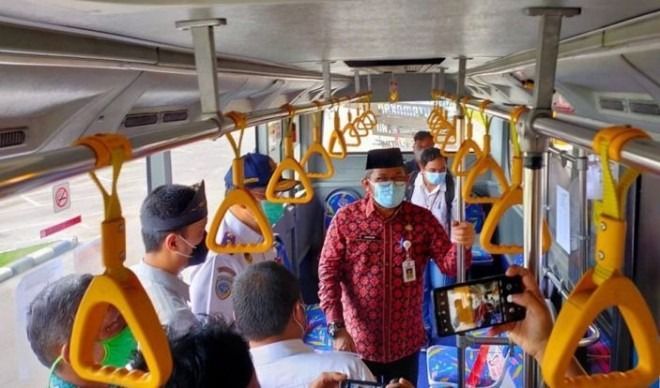 ONLINEJAMBI.COM - Bus Trans Siginjai yang disubsidi Pemprov Jambi resmi beroperasi di dalam Bandara Sultan Thaha Jambi. Sekda Provinsi Jambi Sudirman melakukan launching di bandara, Kamis (22/4).