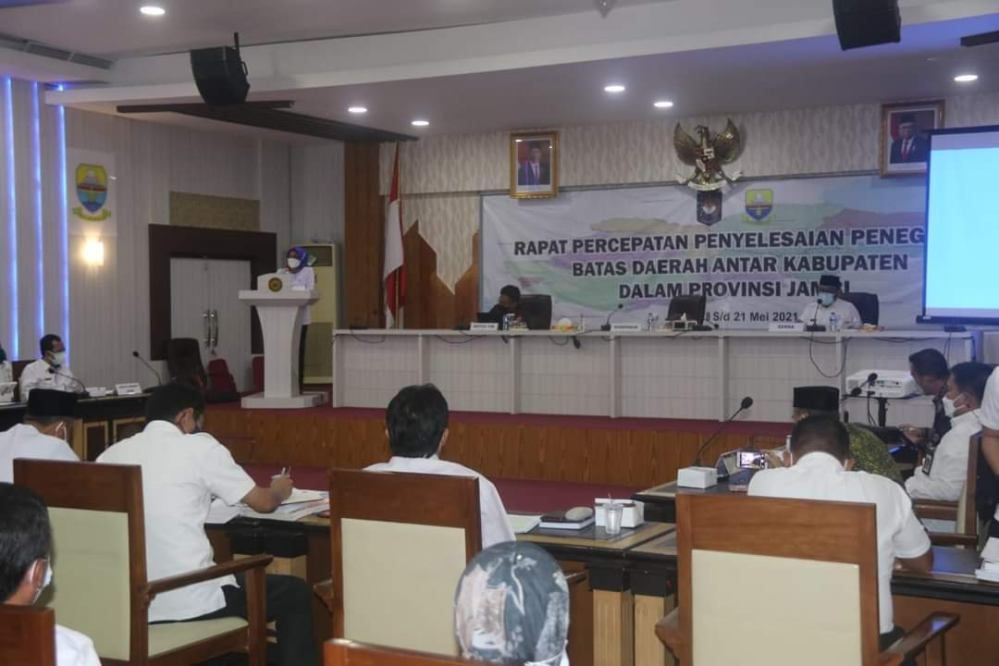 Sementara itu disampaikan oleh Pj.Gubernur segmen batas antarkabupaten/kota di Provinsi Jambi berdasarkan Rekapitulasi Jumlah Penyelesaian Segmen Kabupaten/Kota Dalam Provinsi Dirjen Bina Administrasi Kewilayahan Kementerian Dalam Negeri Republik Indonesia (Per April 2021), di Provinsi Jambi ada 17 segmen batas kabupaten/kota, 12 segmen sudah selesai, 5 segmen belum selesai.