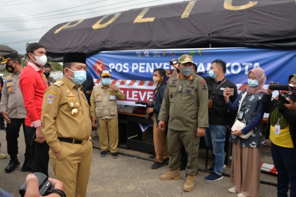 Gubernur Jambi Al Haris saat memantau Pos Penyekatan PPKM Level 4 Kota Jambi yang bertujuan menekan kasus aktif Covid-19 dengan membatasi mobilitas keluar masuk dan kegiatan sosial ekonomi masyarakat, langsung perintahkan pelayanan terintegrasi bagi pengendara yang belum mendapatkan vaksin Covid-19,"Vaksinasi dapat dilaksanakan pada setiap pos penyekatan membantu pelayanan bagi pengendara atau masyarakat," ungkap Gubernur Jambi.