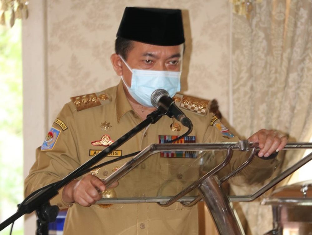 ONLINEJAMBI.COM - Gubernur Jambi Al Haris memimpin langsung rapat penanggulangan Covid-19 dengan Pemkab Tanjab Timur, Senin (30/8), di rumah dinas Bupati Tanjab Timur. Gubernur meminta untuk memperkuat sinergitas dan memperbaiki kekurangan seluruh pemangku kepentingan dalam penanganan penangulangan Covid-19. Hadir Bupati Tanjab Timur Romi Hariyanto dan unsur Forkopimda.