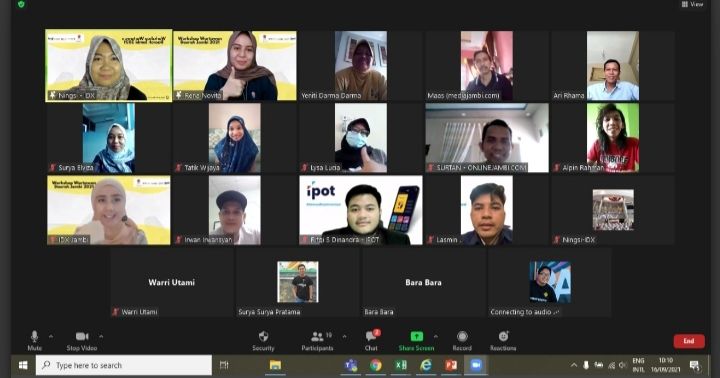 Workshop Wartawan Daerah Provinsi Jambi ini diikuti puluhan wartawan. Meski secara virtual, para peserta antusias mengikuti materi yang disampaikan oleh Fasha Fauziah dan Rifqi S Dinandra yang merupakan pemateri perwakilan pusat.(*)