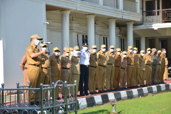 “Selanjutnya, saya menyampaikan pesan sebagai berikut kepada seluruh Bapak dan Ibu penerima kenaikan pangkat ini harus diiringi dengan kenaikan kinerja dan peningkatan produktivitas kerja, dengan memanfaatkan teknologi informasi dan komunikasi, sesuai dengan kondisi saat ini, era digitalisasi, era Revolusi Industri 4.0,” ujarnya di Lapangan Dalam Kantor Gubernur, Selasa (28/9).