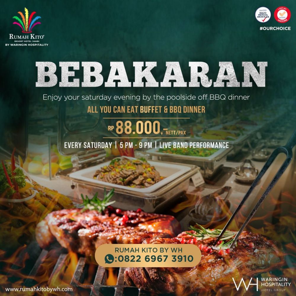 "Cukup bayar Rp88.000,-nett/pax, tamu bisa menikamati semua sajian makan malam & BBQ khas dari Chef Rumah Kito by WH," ujar General Manager Rumah Kito By WH, M Toha.