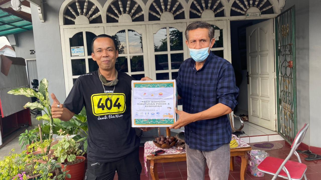 Sembako diterima secara simbolis oleh Ketua FJM Provinsi Jambi, Mursyid Sonsang, dari Yulian, selaku Community Development Supervisor (Comdev Supv) PetroChina International Jabung Ltd.