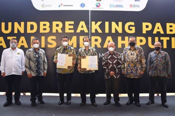 ONLINEJAMBI.COM - Setelah proses uji coba produksi Katalis yang dilakukan oleh Tim Research and Technology Innovation (RTI) Pertamina dan Peneliti Institut Teknologi Bandung, kini Proyek Pembangunan Pabrik Katalis Merah Putih telah mulai dilaksanakan melalui PT Katalis Sinergi Indonesia yang merupakan perusahaan patungan bersama antara: PT Pertamina (Persero) melalui anak usaha Subholding Commercial & Trading Pertamina, PT Pertamina Lubricants; PT Pupuk Indonesia (Persero) melalui anak usaha, PT Pupuk Kujang; serta ITB melalui perusahaannya, PT Rekacipta Inovasi ITB.