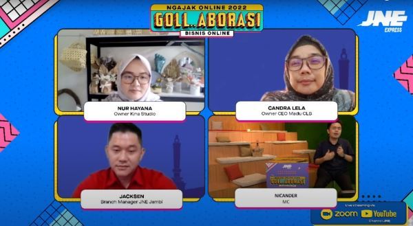 JNE menggelar webinar JNE Ngajak Online 2022 secara virtual guna pemberdayaan UMKM. Mengusung tema “Goll...aborasi Bisnis Online” diharapkan UMKM di Indonesia khususnya Jambi memiliki kemampuan bersaing di dunia digital tidak hanya pada skala nasional namun juga global.