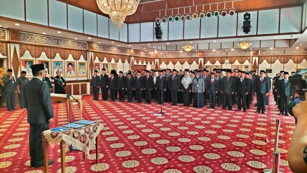 ONLINEJAMBI.COM - Ratusan pejabat Eselon III dan Eselon IV di lingkungan Pemerintah Provinsi (Pemprov) Jambi dilantik Sekretaris Daerah (Sekda) Jambi, Sudirman, Sabtu (25/02/2023) pagi.