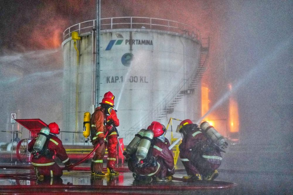 Untuk melatih kesiapan personil dalam menghadapi berbagai situasi di lapangan, Pertamina Patra Niaga Regional Sumbagsel menggelar latihan simulasi keadaan darurat pada malam hari di Fuel Terminal (FT) Jambi, Rabu (26/7/2023).
