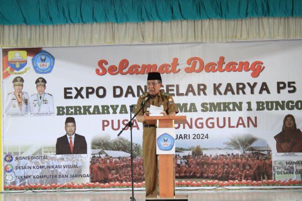 ONLINEJAMBI.COM - Wakil Gubernur (Wagub) Jambi Abdullah Sani mengapresiasi kegiatan Ekspo dan Gelar P5 (Proyek Penguatan Profil Pelajar Pancasila) dengan tema ”Berkarya Bersama SMK Negeri 1 Bungo Pusat Keunggulan” Tahun 2024 yang diselenggarakan di SMKN 1 Bungo pada Selasa (23/1/2023).