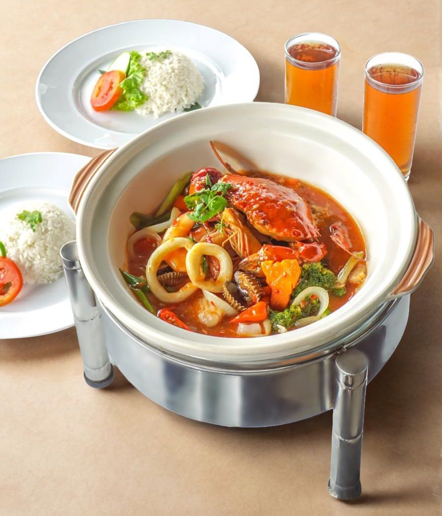 Seafood Claypot menghadirkan kombinasi mewah dari berbagai hidangan laut, dengan kombinasi udang, cumi-cumi, ikan, kerang, kepiting, stik kepiting, wortel, dan brokoli. Pengunjung dapat memilih saus yang diinginkan, antara lain saus tiram, saus ala Singapura, atau saus XO yang premium. Setiap saus disediakan dengan cermat untuk berpadu dengan kesegaran hidangan laut dan memperkaya rasa untuk menciptakan pengalaman makan yang tak terlupakan.