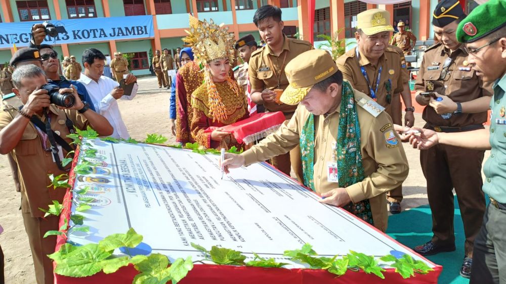 ONLINEJAMBI.COM - Gubernur Jambi Al Haris memimpin upacara launching pelaksanaan Penerimaan Peserta Didik Baru (PPDB) tahun ajaran 2024/2025 yang berlangsung di SMA 13 Kota Jambi, Senin (10/06/2024).