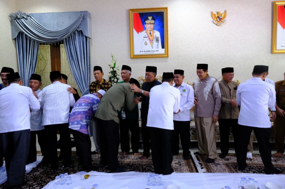 ONLINEJAMBI.COM - Wakil Gubernur Jambi Abdullah Sani melaksanakan Halal Bihalal bersama Keluarga Besar Ikatan Keluarga Alumni Pergerakan Mahasiswa Islam Indonesia (IKA PMII) Provinsi Jambi di Rumah Dinas Wakil Gubernur Jambi, Senin (14/4/2025).