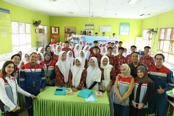 Acara bertajuk Pertamina Goes to School ini menghadirkan dua perwira untuk berbagi wawasan. Officer Operator Gathering Station Mesakh Fridolin membagikan pengetahuan tentang eksplorasi migas di lapangan, sementara itu Officer Emergency Response Health Safety Security Environment (HSSE) Teguh Santoso memaparkan mengenai lingkungan.