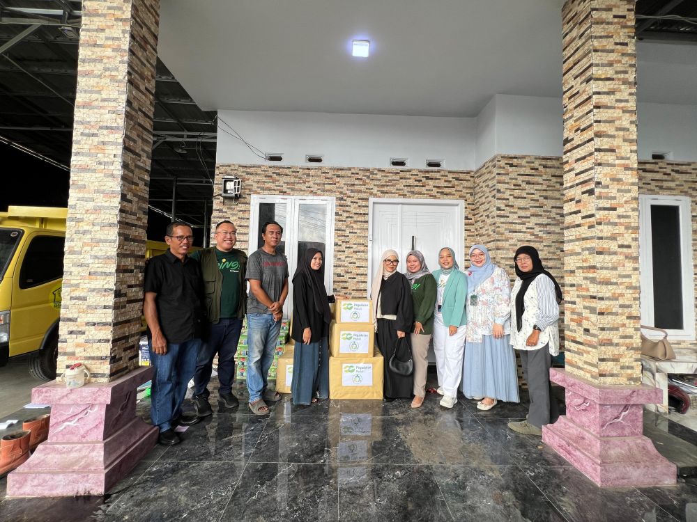 Penyerahan bingkisan dilakukan oleh masing-masing pimpinan cabang kepada ketua Bank Sampah di wilayahnya.