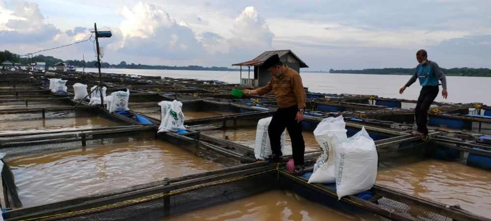 ONLINEJAMBI.COM - Al Haris, Calon Gubernur Jambi nomor urut 3, memantau keramba ikan di Dusun Tuo, Desa Pematang Jering, Jaluko, Muarojambi.