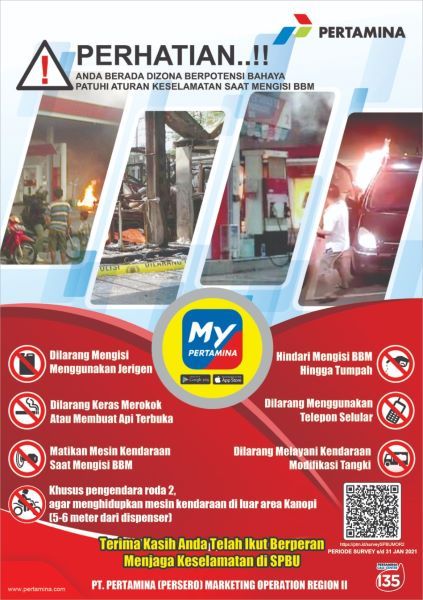 Sosialisasi ini diberikan langsung oleh Health, Safety, Security & Environment (HSSE) Pertamina MOR II dan Safetyman SPBU untuk meningkatkan kesadaran konsumen akan potensi bahaya dan resiko ketika berada di SPBU. Adapun total pamflet yang disebarkan di 5 Provinsi Sumbagsel sejumlah 5.600 pamflet yang disebarkan dengan jumlah responden online sudah mencapai sekitar 467 responden.