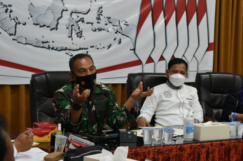 ONLINEJAMBI.COM - Danrem 042/Gapi Brigjen TNI M. Zulkifli menghadiri Rakor Pemilihan Suara Ulang (PSU) yang digelar KPU Provinsi Jambi, di kantor KPU Jambi Senin (17/5).