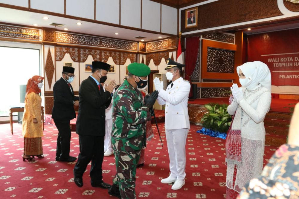 ONLINEJAMBI.COM - Danrem 042/Gapu Brigjen TNI M Zulkifli menghadiri acara pengambilan sumpah jabatan Wali Kota dan Wakil Wali Kota Sungaipenuh masa jabatan 2021-2024.