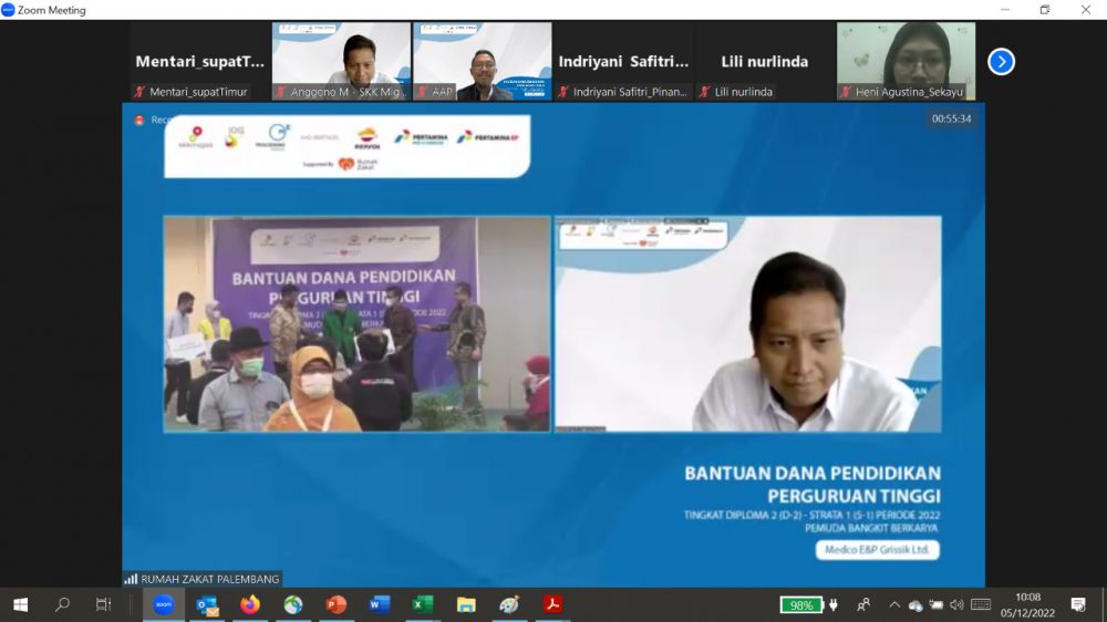 Kepala SKK Migas Perwakilan Sumatera Selatan, Anggono Mahendrawan dalam sambutannya secara online mengapresiasi program pemberian bantuan Pendidikan pada mahasiswa dan guru honorer tersebut.